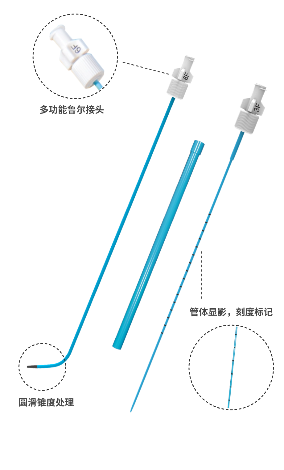 管体有刻度标记及加强显影,方便及时掌握管体进入人体内的位置;