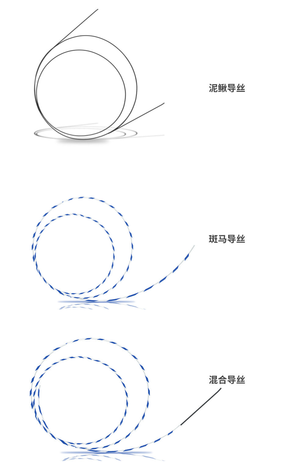 蓝白相间条纹,便于观察导丝运动轨迹;