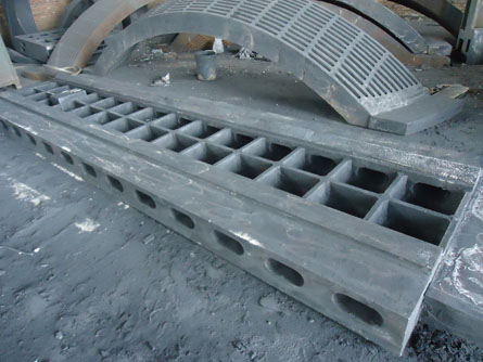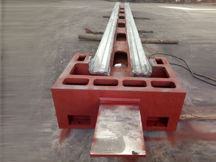 機床床身生產工藝:我公司有一條完善的樹脂砂生產線,各種大型機床床身均采用樹脂砂、消失模鑄造。這種工藝使得鑄件尺寸,均勻一致,不扣箱,鑄件無飛邊、毛刺;表面光滑度接近鑄造,內部結構穩定,排除或降低了砂眼、氣空等鑄造缺陷,整個生產過程環保,沒有污染。